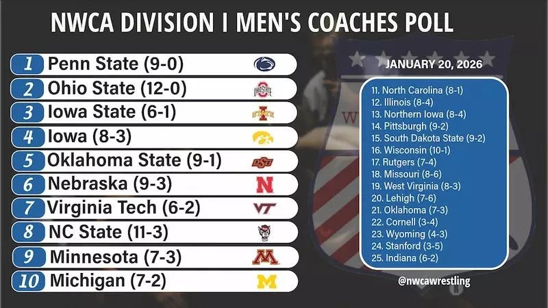 10th NWCA DI Men’s Wrestling Coaches Poll