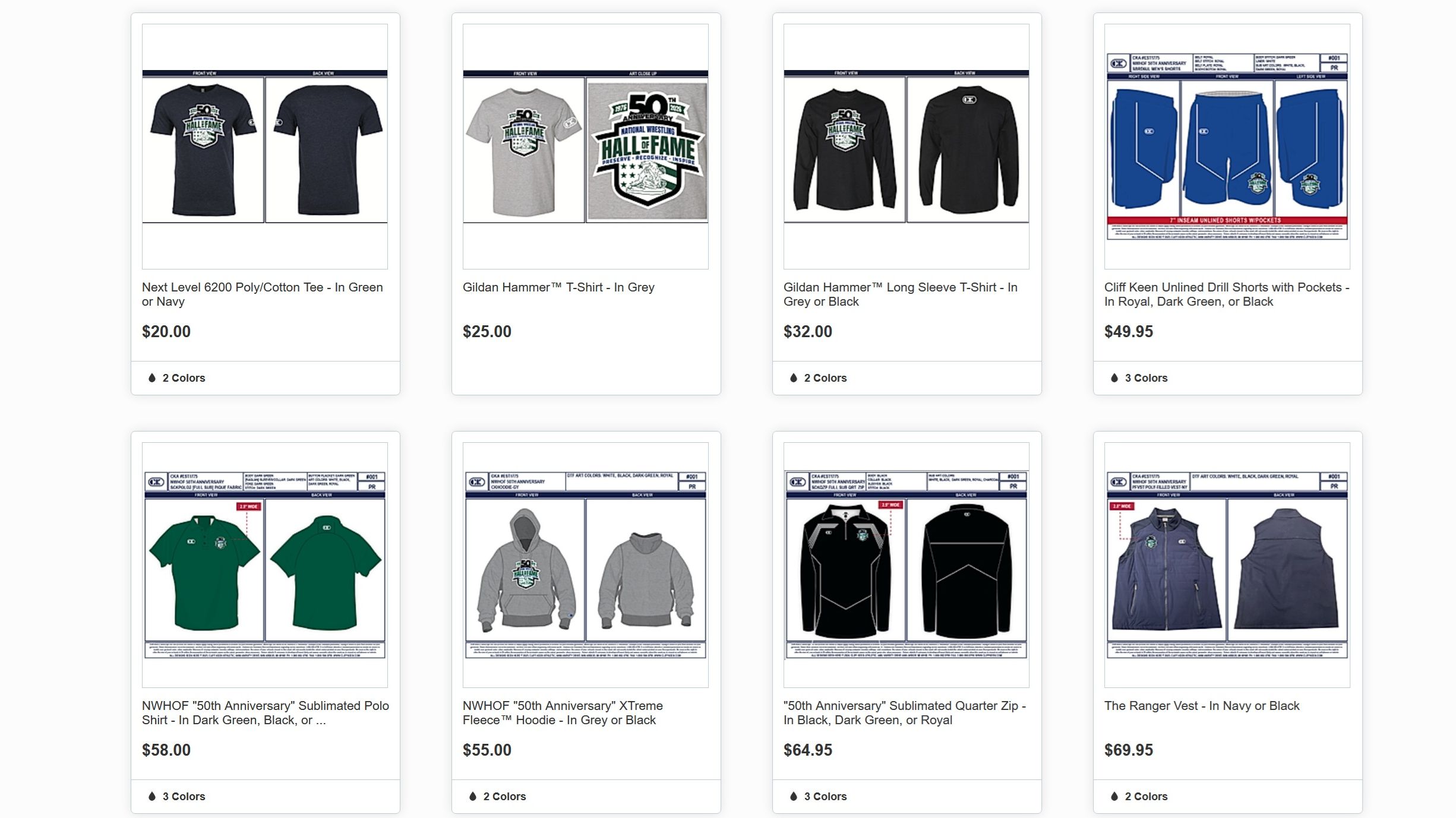 Designed to honor five decades of preserving, recognizing, and inspiring excellence in wrestling, the collection includes commemorative t-shirts, sweatshirts, hoodies, shorts, vests, quarter zips, and a backpack.